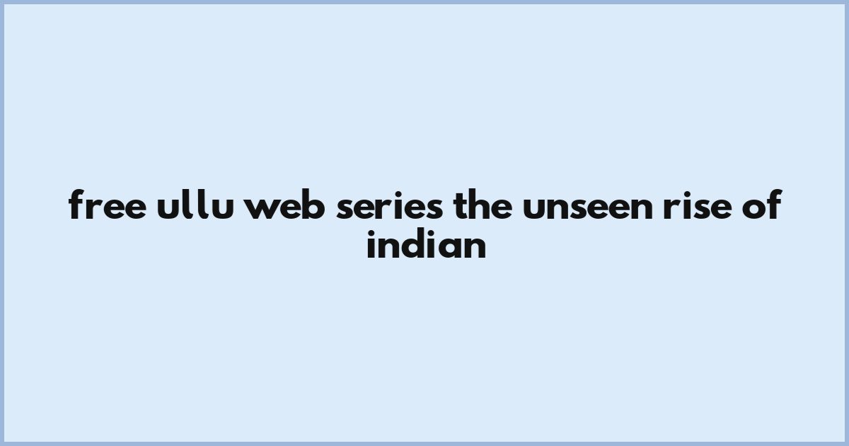 Free Ullu Web Series: The Unseen Rise Of Indian