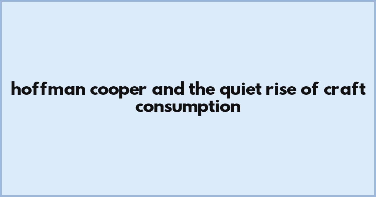 Hoffman Cooper And The Quiet Rise Of Craft Consumption