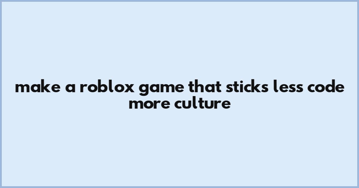 Make A Roblox Game That Sticks: Less Code, More Culture